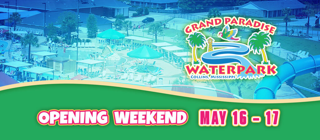 Enjoy a day packed with fun-in-the-sun excitement for all ages! Grand Paradise Waterpark is a 7 acre blast of wet and wild fun. We are located on Hwy 49 in Collins, Mississippi approximately 30 minutes north of Hattiesburg and 60 minutes south of Jackson.